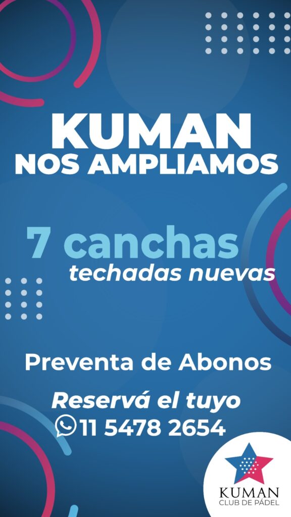 Con fecha estimada de inauguración para ABRIL/MAYO, comenzaron las obras para la ampliación de Kuman. La nueva sede dispondrá de más de 10 canchas, que se habilitarán en diferentes etapas. Está previsto que al menos 7 de las canchas sean techadas, mientras que todo el complejo contará con césped sintético Forbex de máxima calidad y vidrio templado. El club contará también con tienda de pádel, buffet, zona de entrenamiento y mucho más!